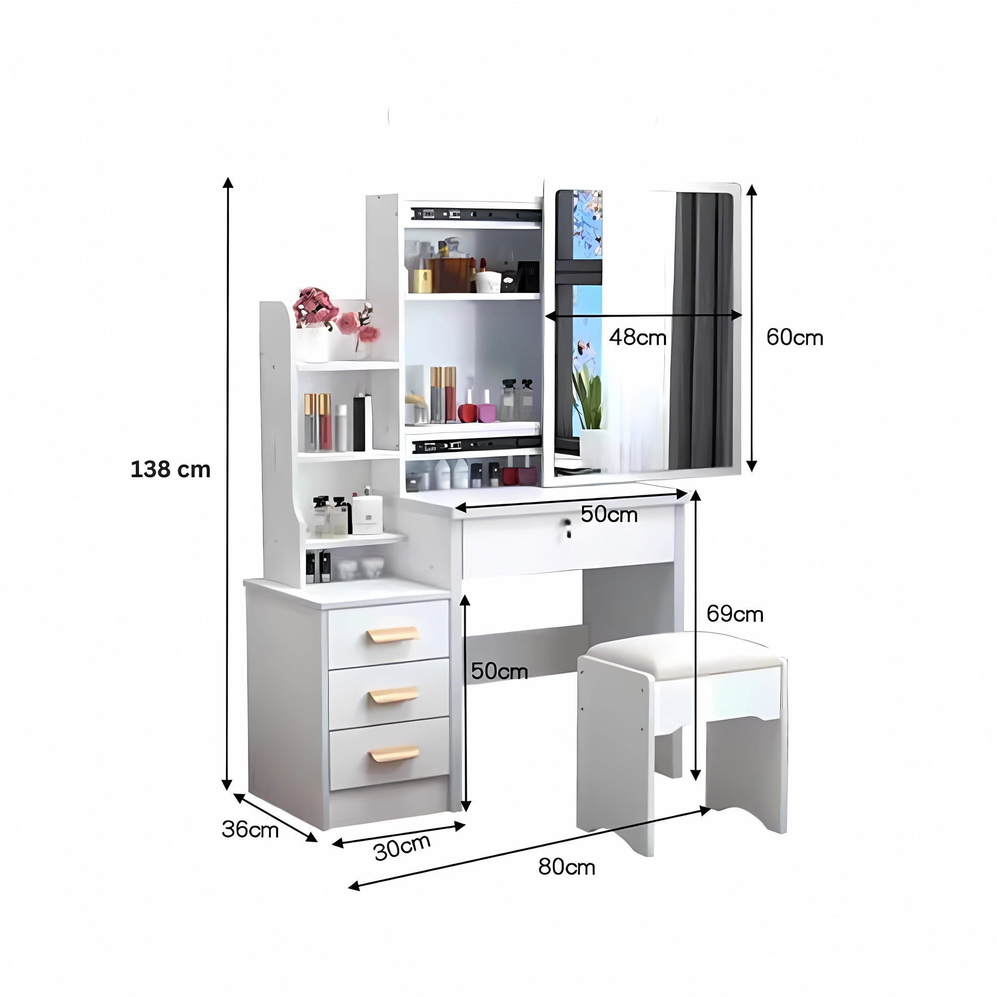 Tocador de maquillaje de 4 cajones Premium Blanco